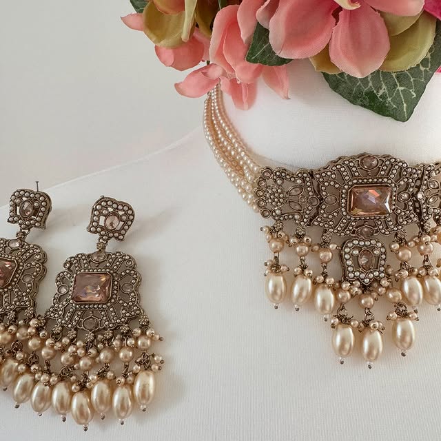 Turn heads with our most enchanting choker set, as showcased by the stunning @kazminfiaz on the @asianatv catwalk. This set includes a delicately crafted choker, matching earrings, and an elegant tikka—perfect for weddings, special occasions, and glamorous events.